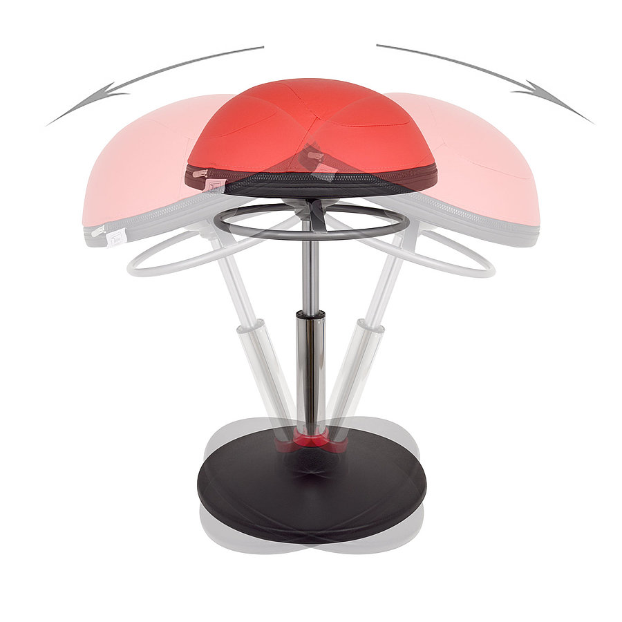 Ergonómikus ingamozgású labdaszék. Ideális a hosszú, mozdulatlan ülés okozta hátproblémák megelőzésére. Az oszcilláló ülés lehetővé teszi a gyakori pozícióváltást, és a felhasználó állandó mozgásra kényszerül. Ez különösen jó a gerinc, a csigolyaközti lemezek és a hátizmok számára.